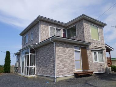一色の外壁から、細かい石積柄で立体感のある外壁に張りなおし重厚感のある印象となりました。屋根や雨樋なども塗装・交換することにより仕上がりました。